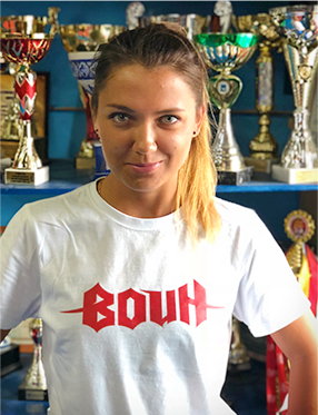 « С самого начала создания тренируюсь в лучшем клубе нашего города. С каждым годом КТБ «ВОИН» развивается и разрастается. Наша команда из года в год пополняется чемпионами и это лучшее доказательство того, что мы работаем в нужном направлении. КТБ "ВОИН" растит чемпионов!»